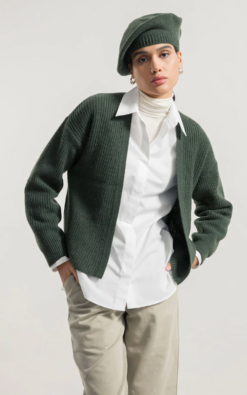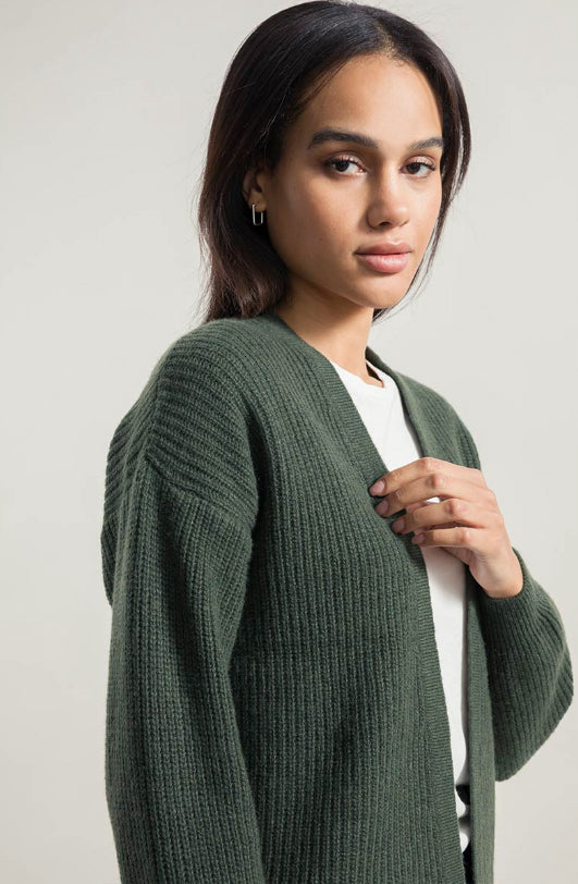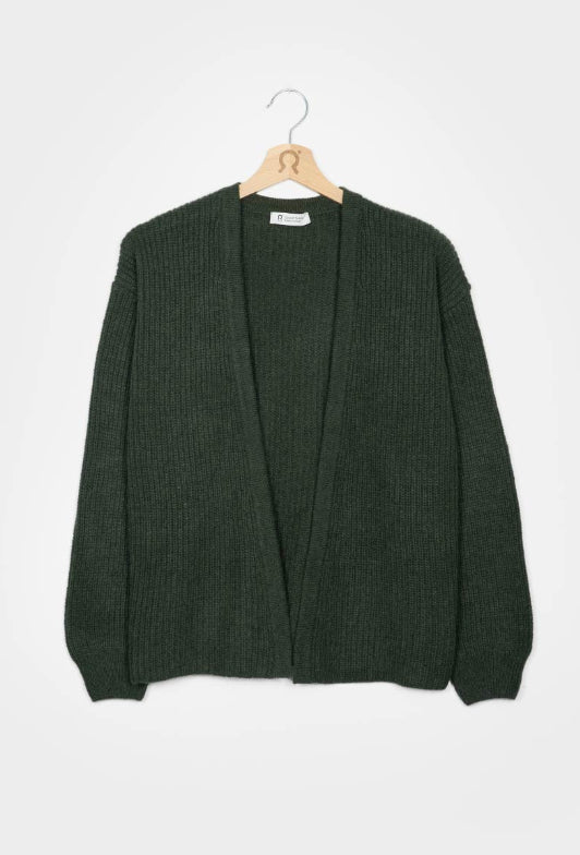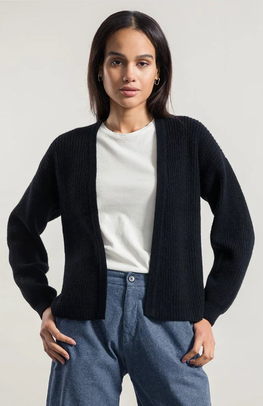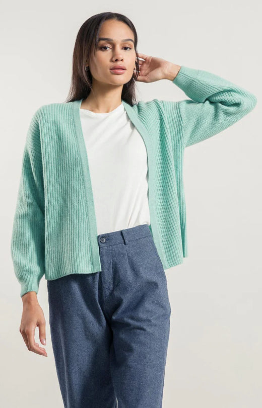 Il cardigan in cashmere rigenerato Margherita si appoggia al primo fianco ed ha una vestibilità comoda e leggermente oversize grazie anche alla manica scesa e il giro manica con taglio a T.